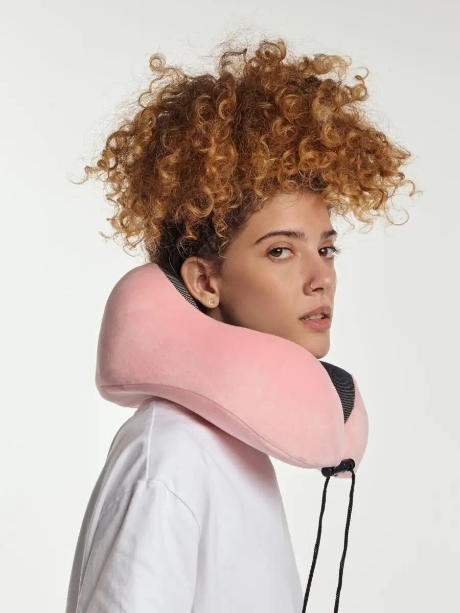 Подушка для шеи с эффектом памяти Velur синяя с карманом