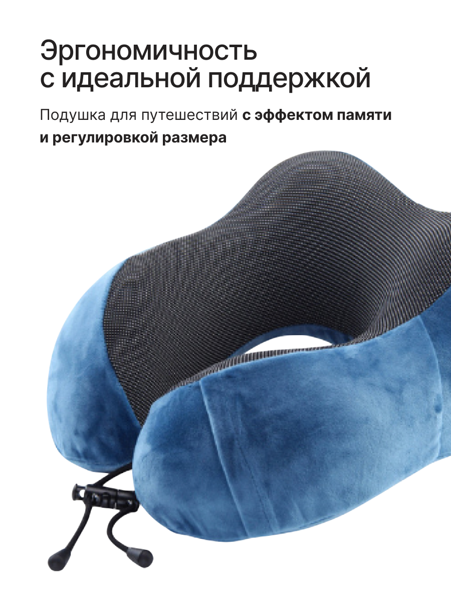 Подушка для шеи с эффектом памяти Velur синяя с карманом