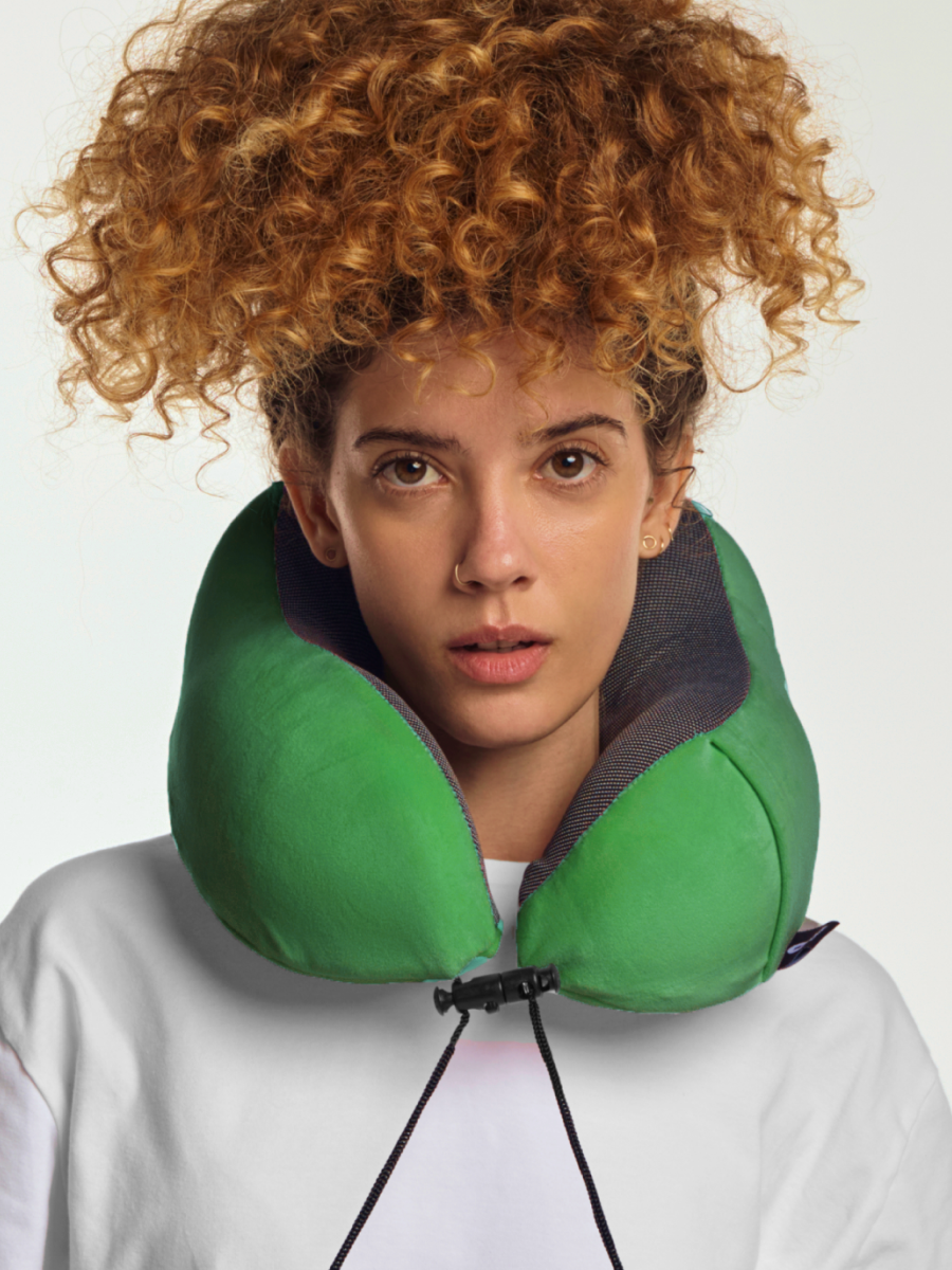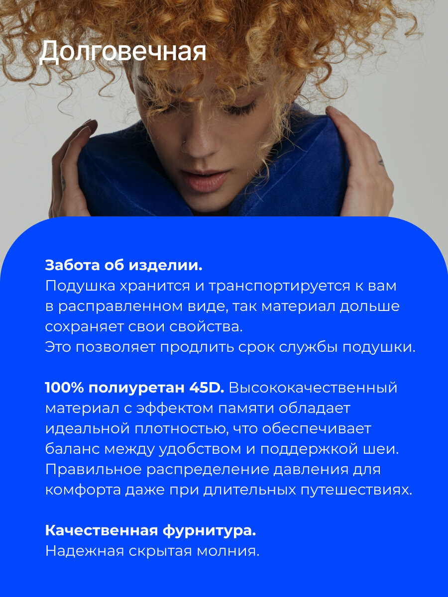 Подушка для шеи с эффектом памяти Velur синяя с карманом
