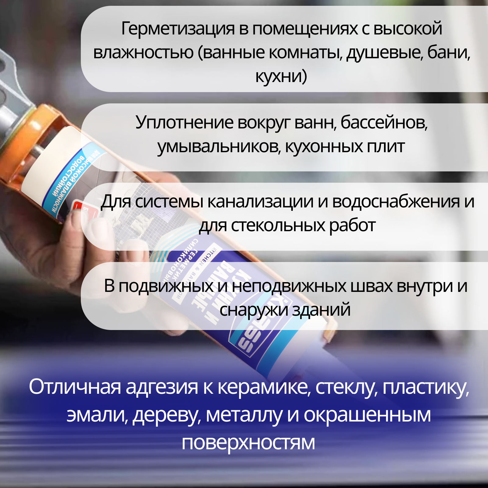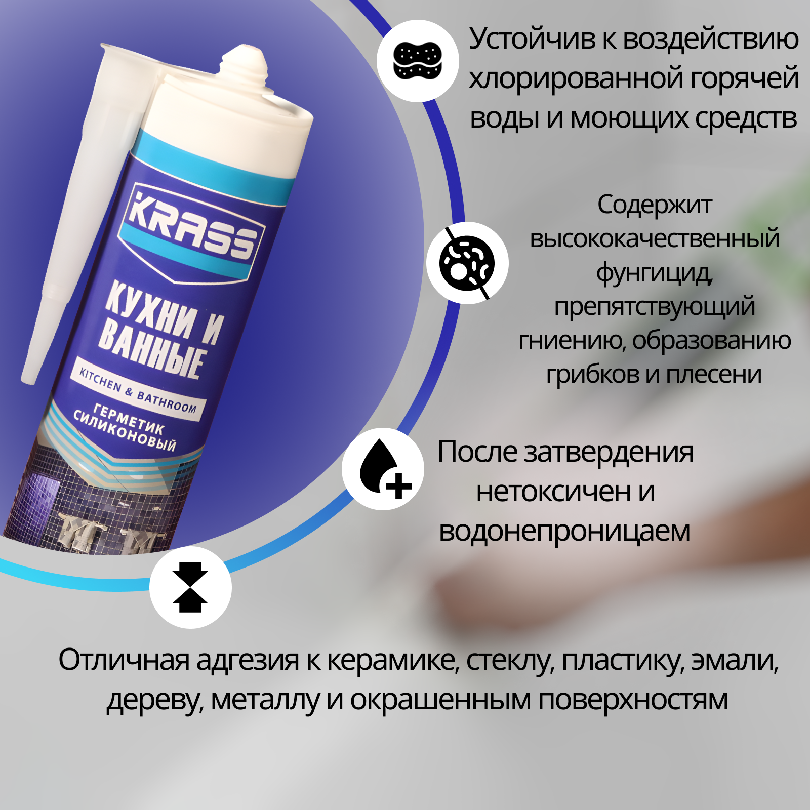 Силиконовый герметик KRASS для кухни и ванны 300 мл. Белый