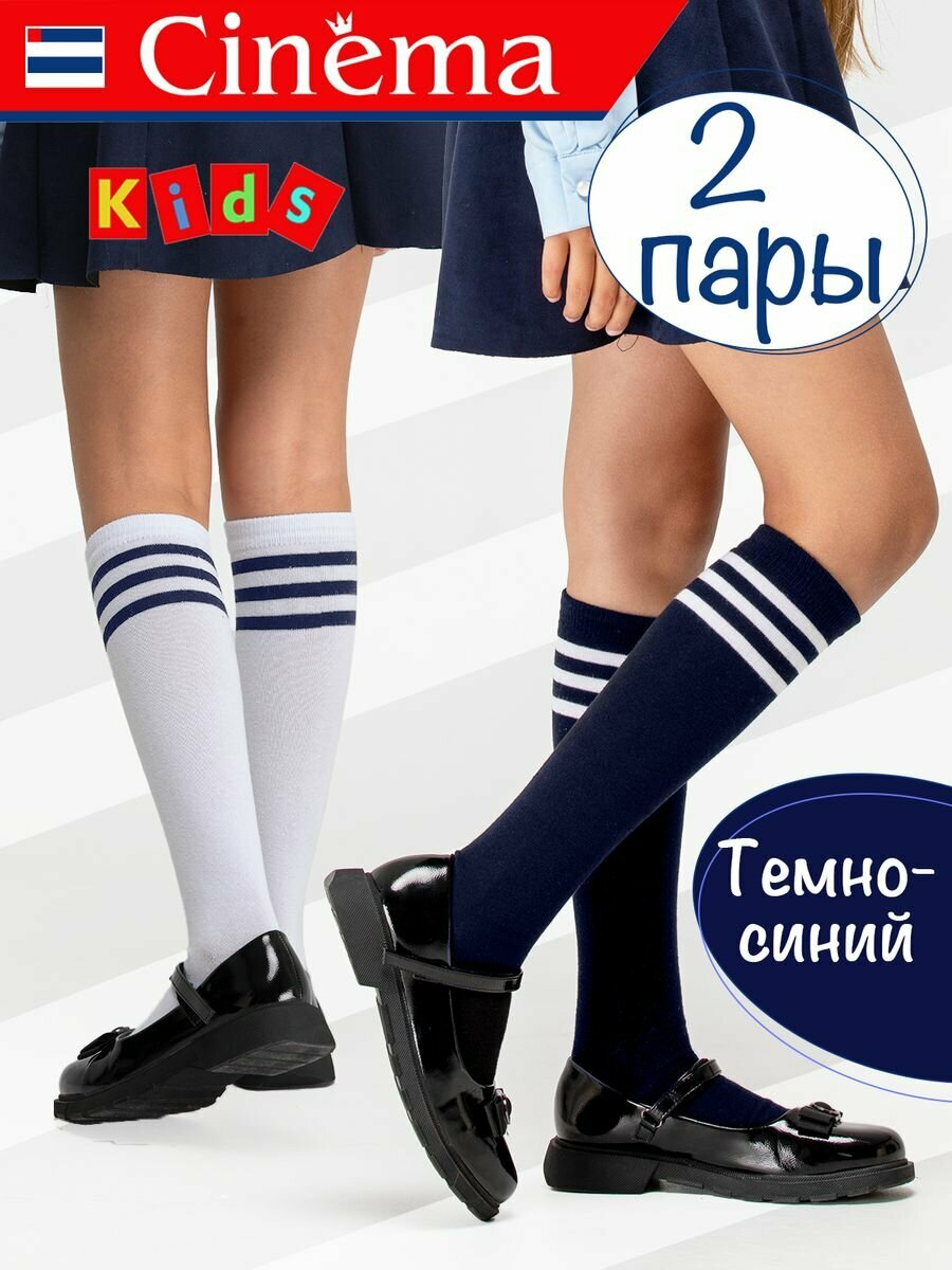 Купить Гольфы Cinema детские 2 пары темно - синие и белые с полосками, 2 пары, размер 29-31, , белый, синий