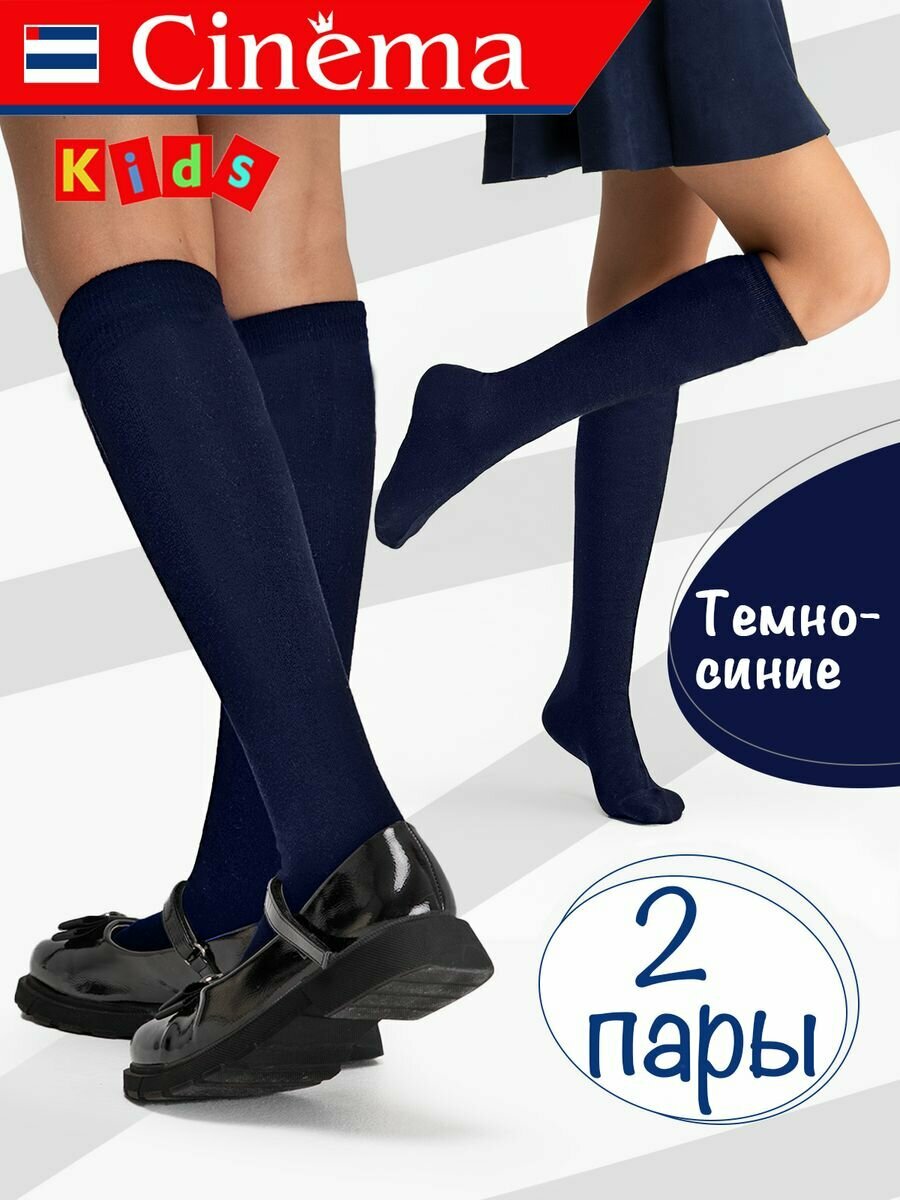 Купить Гольфы Cinema детские 2 пары темно - синие, 2 пары, размер 22, , синий