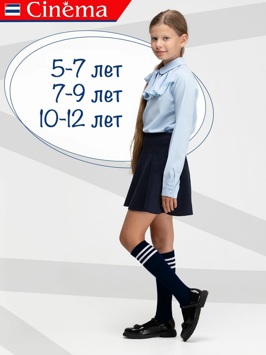 Купить Гольфы Cinema детские 2 пары темно - синие и белые с полосками, 2 пары, размер 32-34, , белый, синий