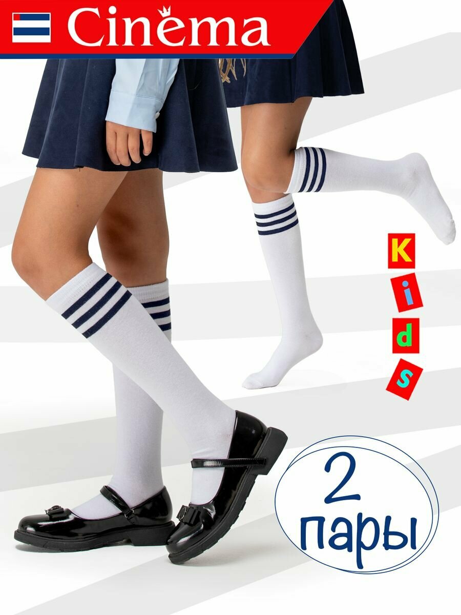Гольфы Cinema детские 2 пары белые с синими полосками, 2 пары, размер 29-31, , белый