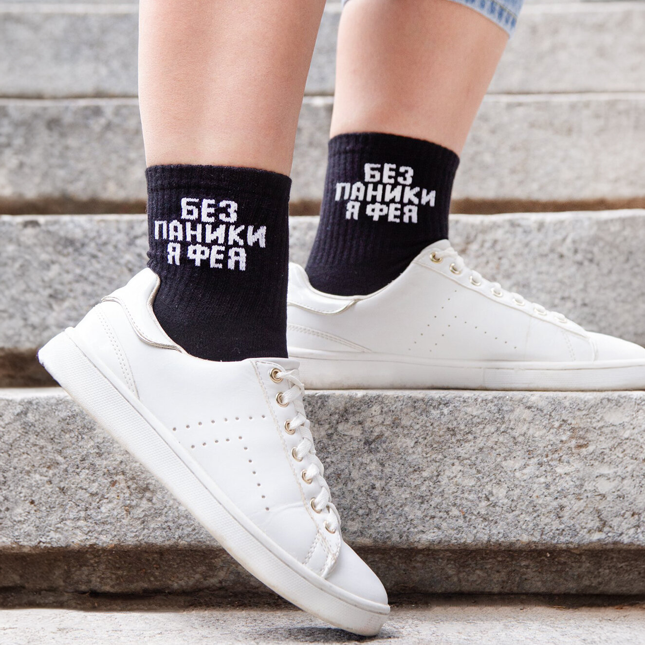 Носки Happy Fox с надписью HF0238без.паники.я.фея.черный