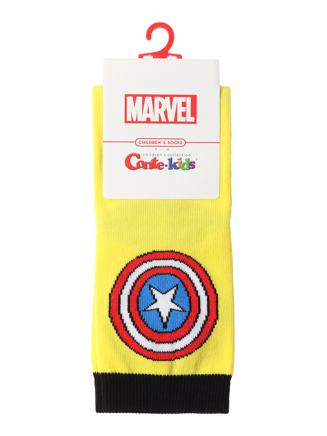 Носки из хлопка Conte-kids с рисунком Капитан Америка ©MARVEL, размер 22(33-35), рисунок 589, цвет Желтый