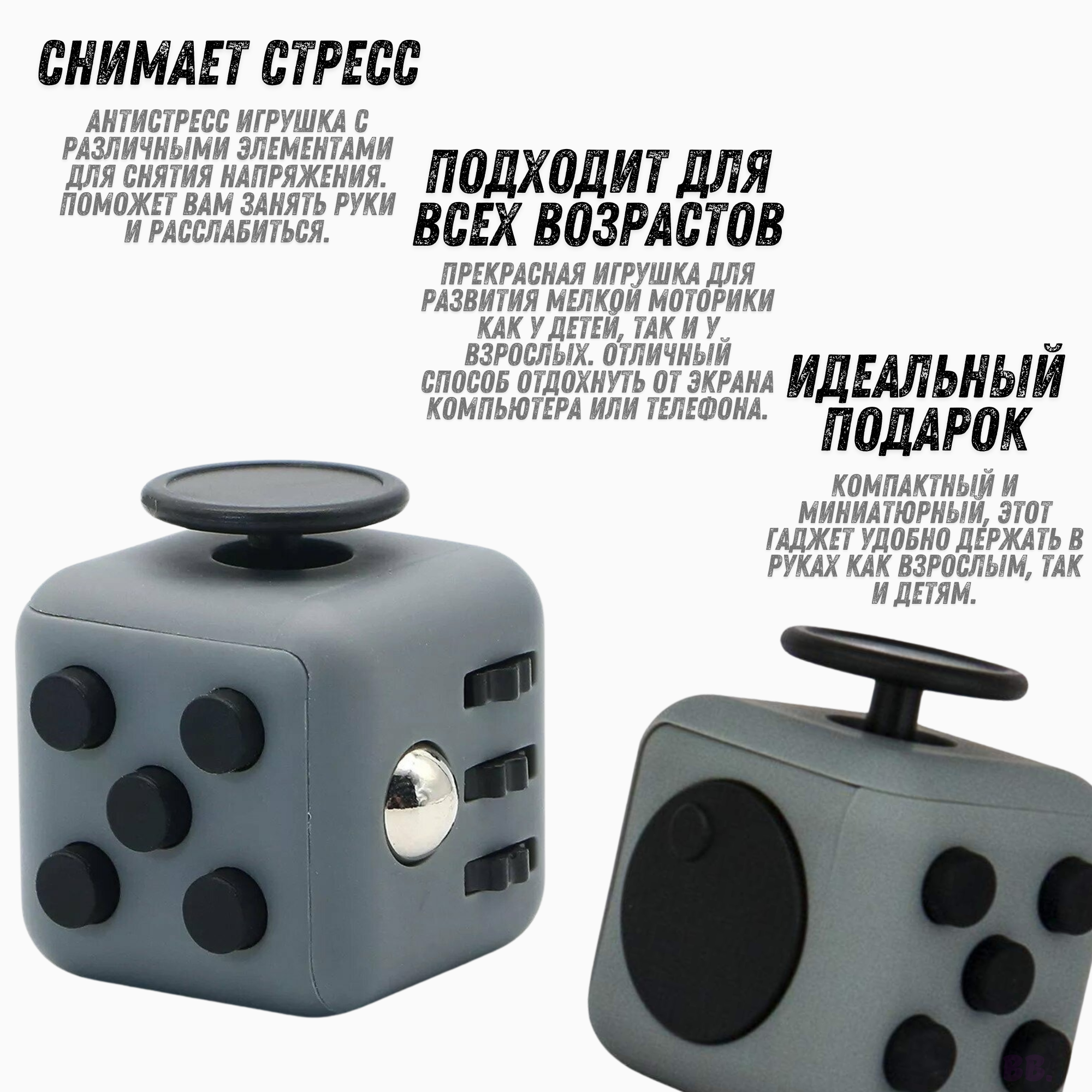 Кубик антистресс с кнопками для рук успокаивающий фиджет куб fidget cube серый