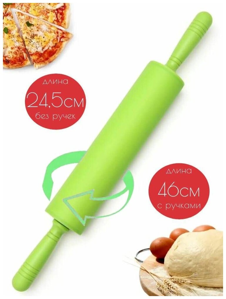 Скалка силиконовая с пластиковыми ручками, 24,5 см, салатовый интересное: