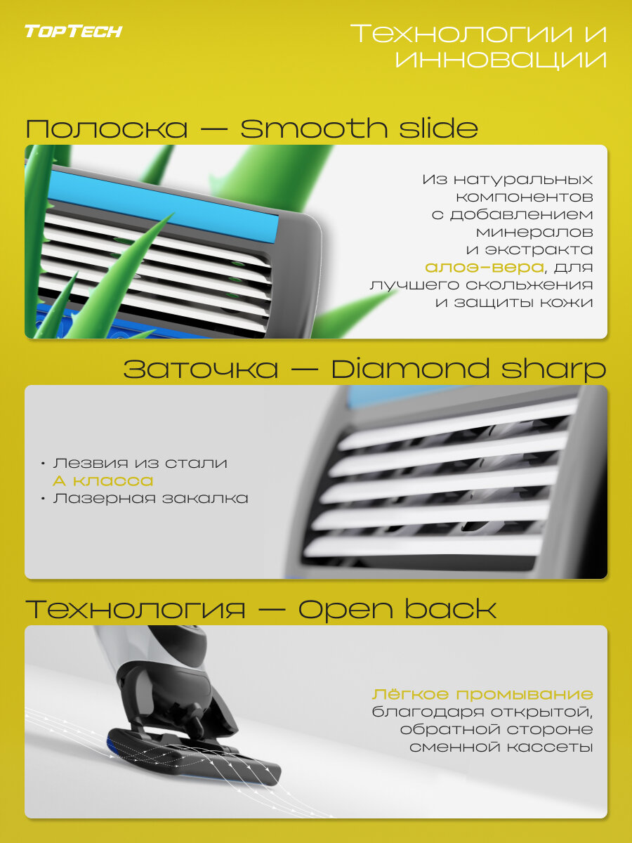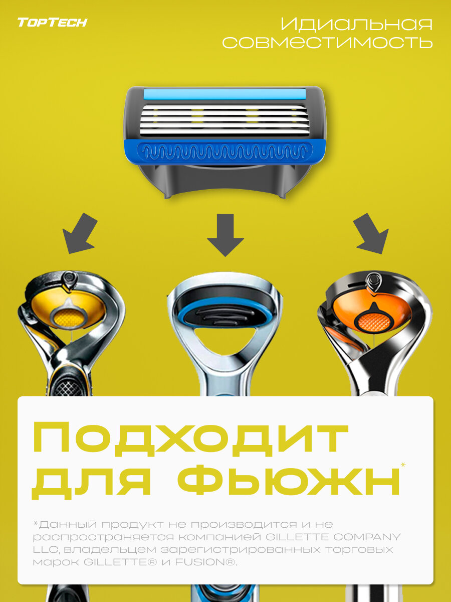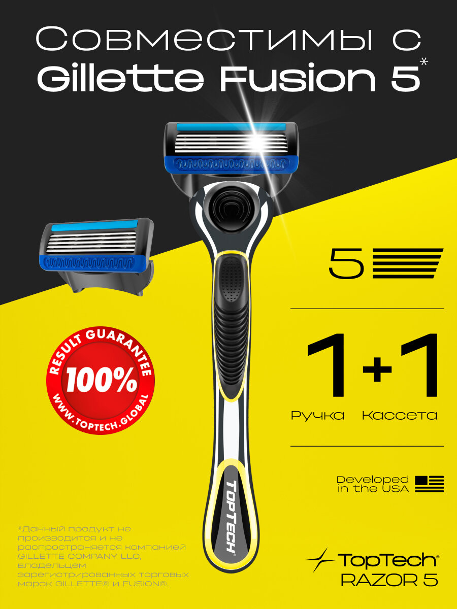 top tech razor 5 сменные кассеты мужские 4шт совместимы с gillette fusion