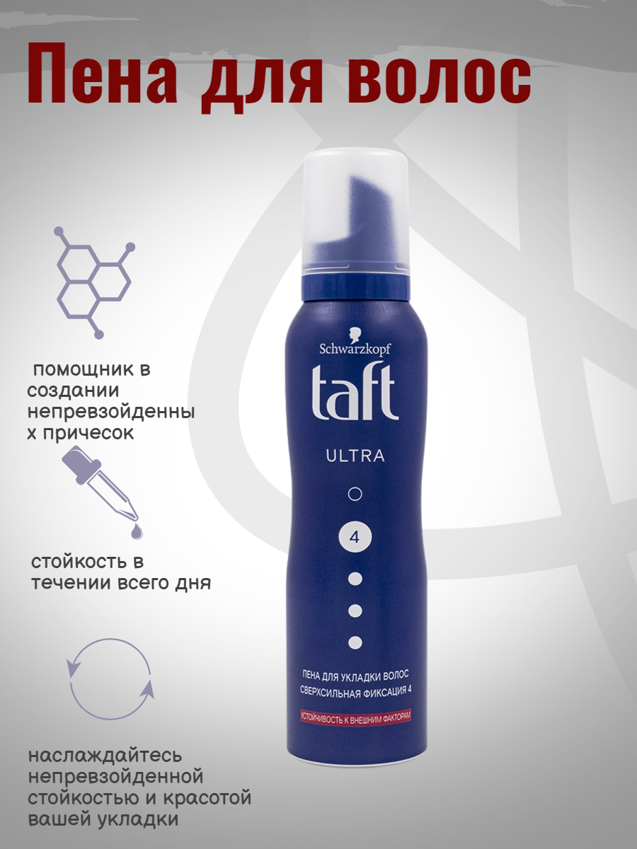 Пена для укладки волос сверхсильной фиксации Taft Ultra№4 150 мл интересное: