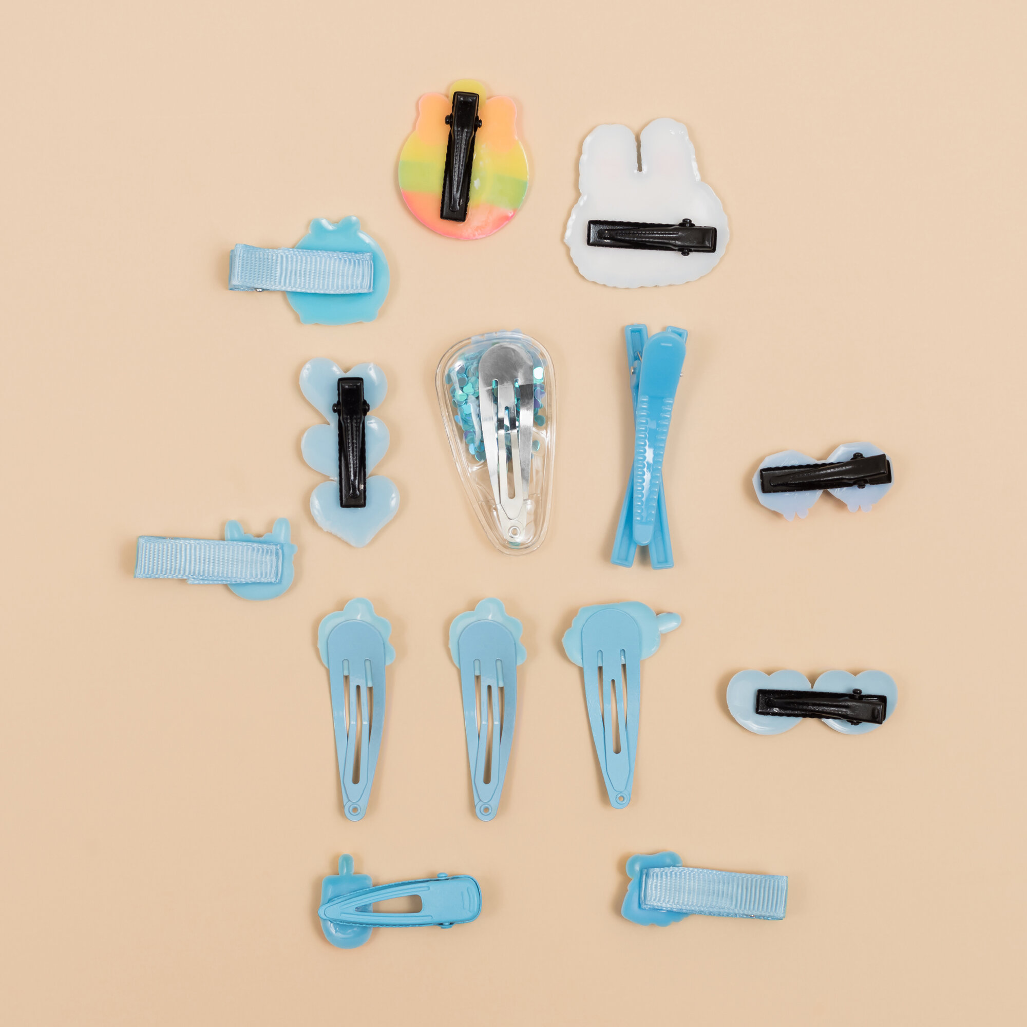 Купить Набор заколок для девочек "Croco Gifts", металл, пластик, гипоаллергенный сплав, 14 штук, голубые