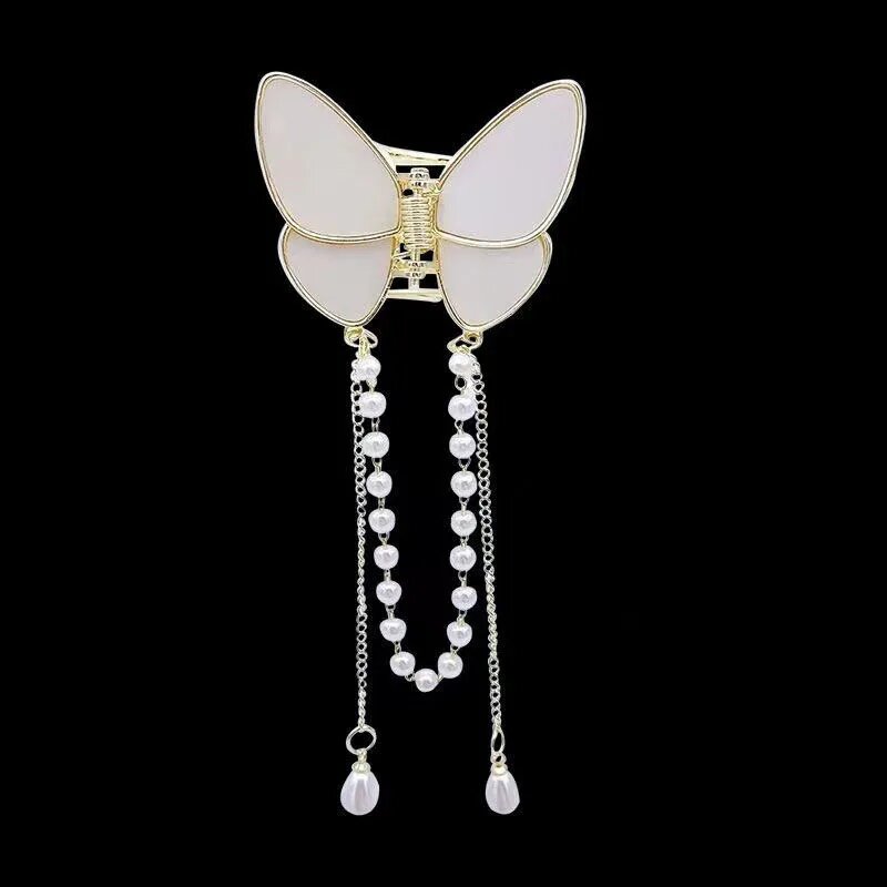 Новинка 2023! Блестящий краб-бабочка для волос с кисточками из жемчужин (имитация). цвет Золото