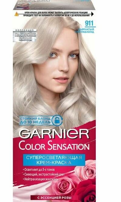 GARNIER Color Sensation Платиновые блонды стойкая крем-краска, 911 дымчатый ультраблонд, 110 мл