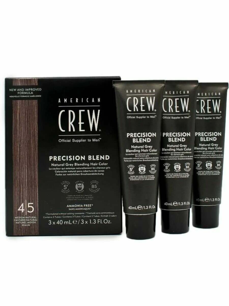 American Crew Precision Blend 4/5 Средний натуральный - Краска для седых волос 3 х 40 мл