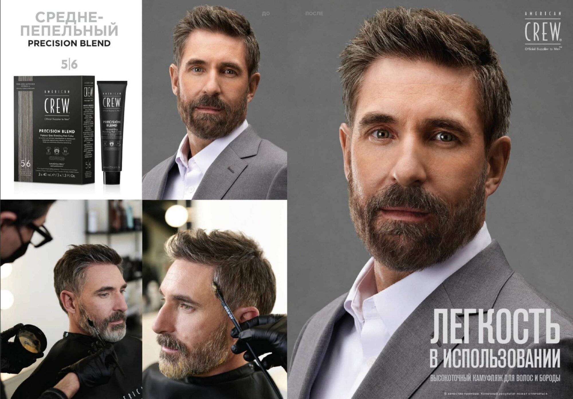 American Crew Precision Blend 5/6 Средний пепельный - Краска для седых волос 3 х 40 мл