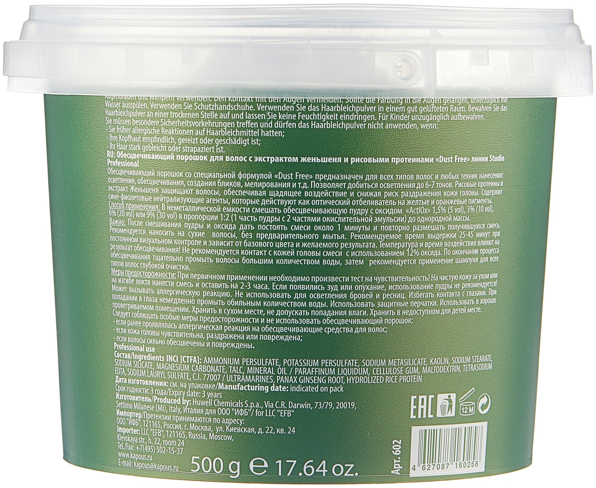 Kapous Обесцвечивающий порошок с экстрактом женьшеня и рисовыми протеинами Studio Professional Dust Free Blondtouch 3 % интересное:
