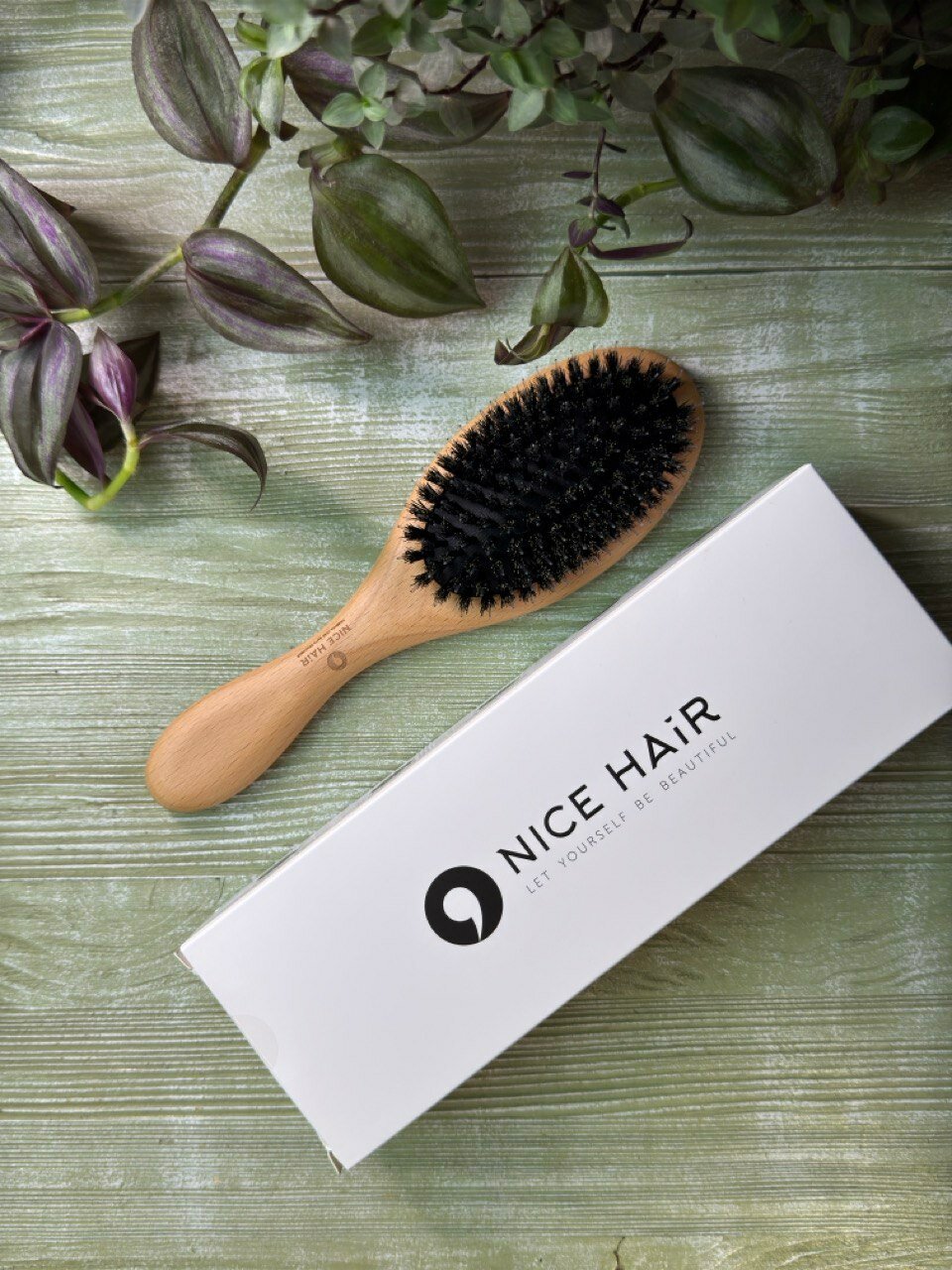 Расческа NICE HAIR массажная, деревянная, антистатик, с натуральной щетиной кабана, квадратная, бежевый