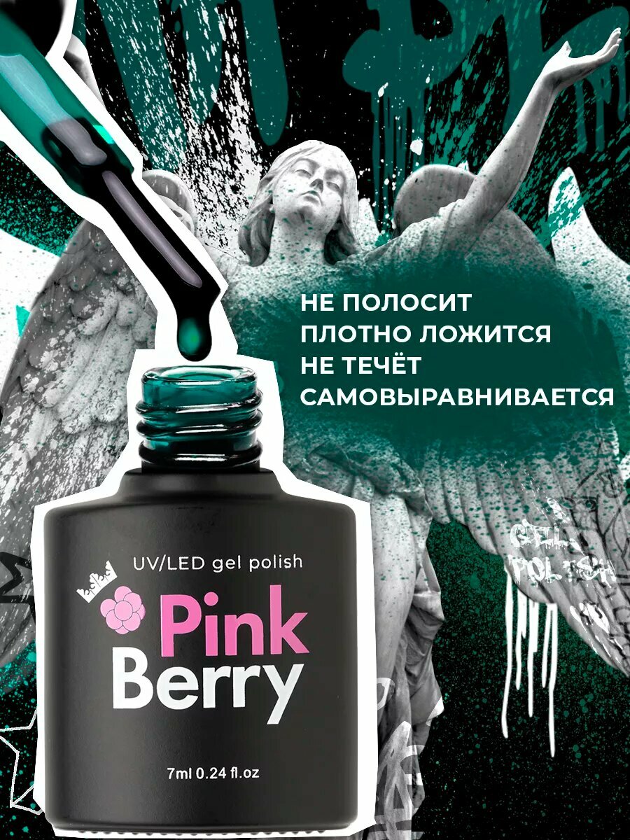 Витражный гель лак для ногтей "Pinkberry" изумрудный зеленый, объем 7мл.