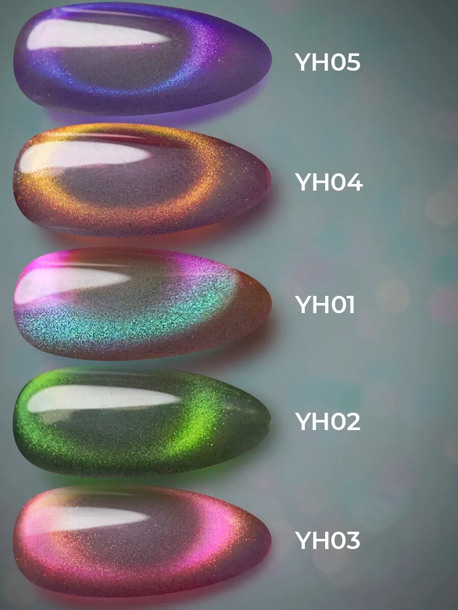 Купить Гель лак для ногтей, маникюра и педикюра кошачий глаз хамелеон витражный, набор 5 шт по 4 мл с магнитом от Pinkberry