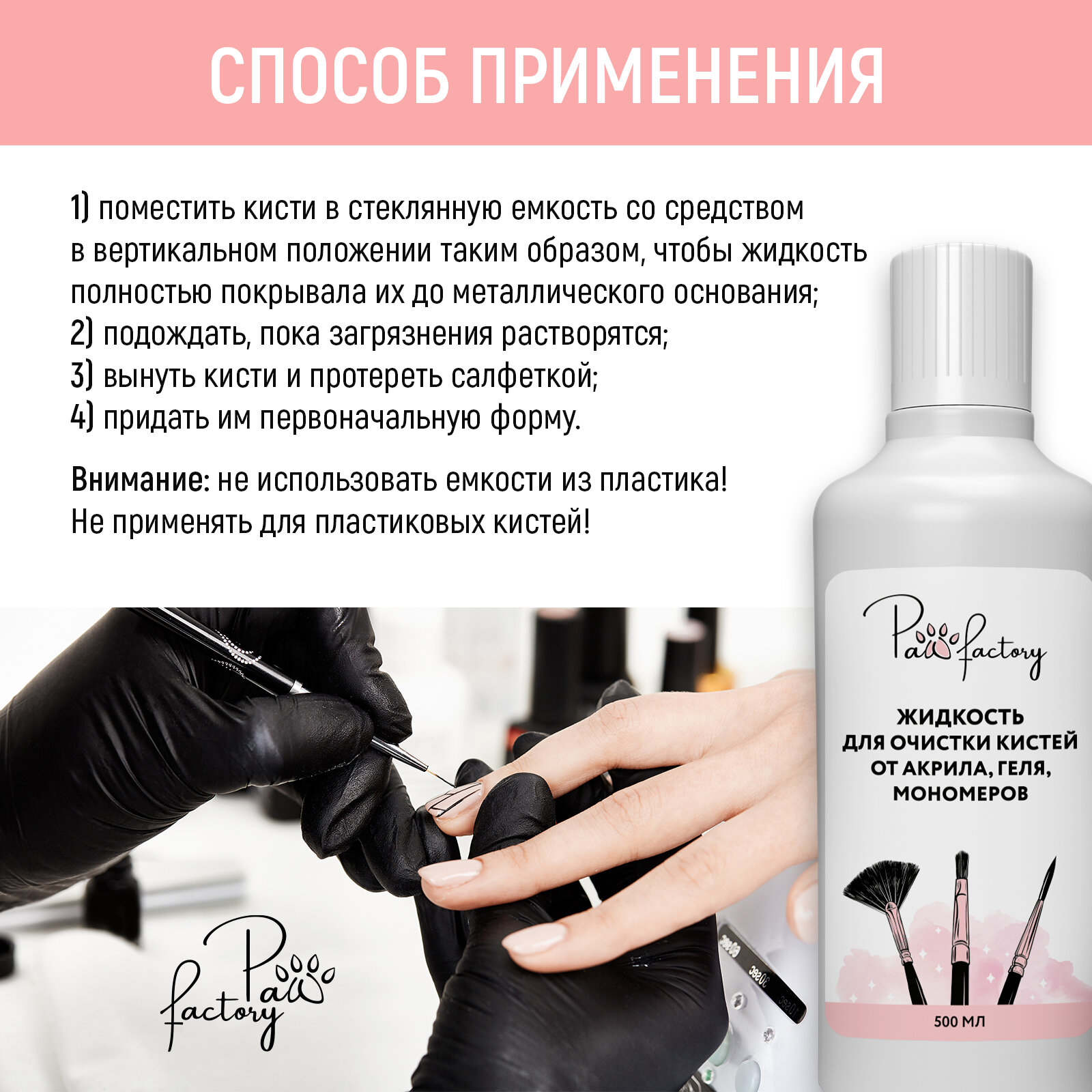 Средство для очистки кистей маникюра и педикюра PAW FACTORY, 500 мл интересное: