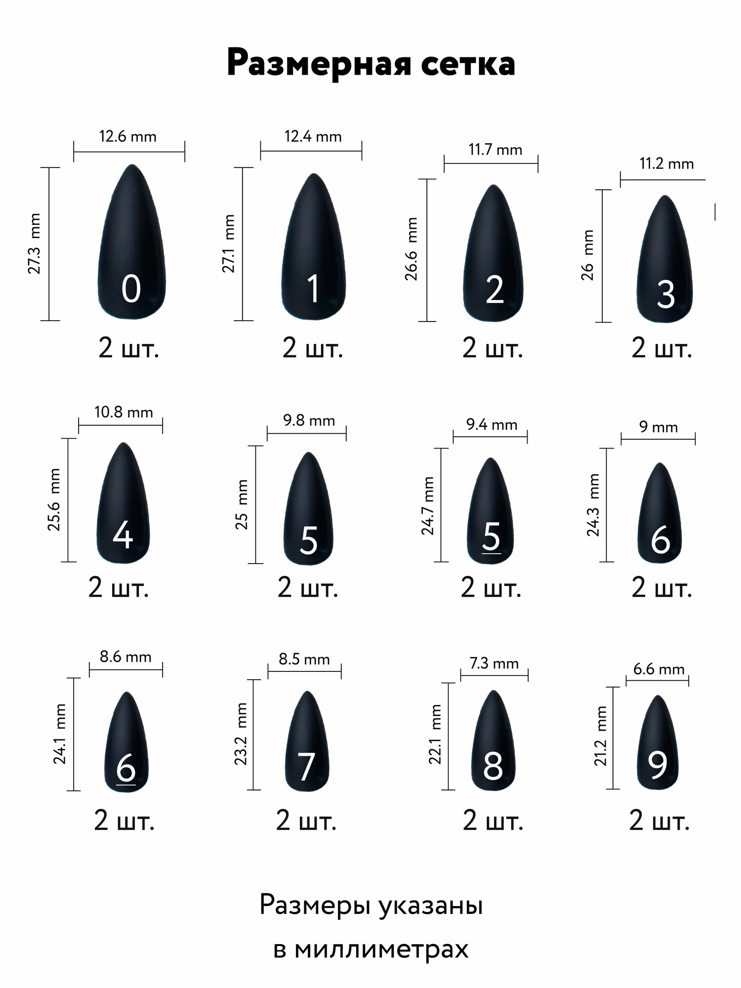 | Подробная комплектация | Типсы 24 шт; клеевые стикеры - 24шт; пушер -1 шт; пилочка -1шт; клей - 1шт. |