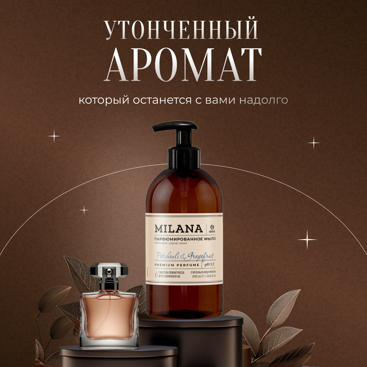Жидкое мыло Grass для рук увлажняющее, парфюмированное Milana Patchouli&Grapefruit 300 мл