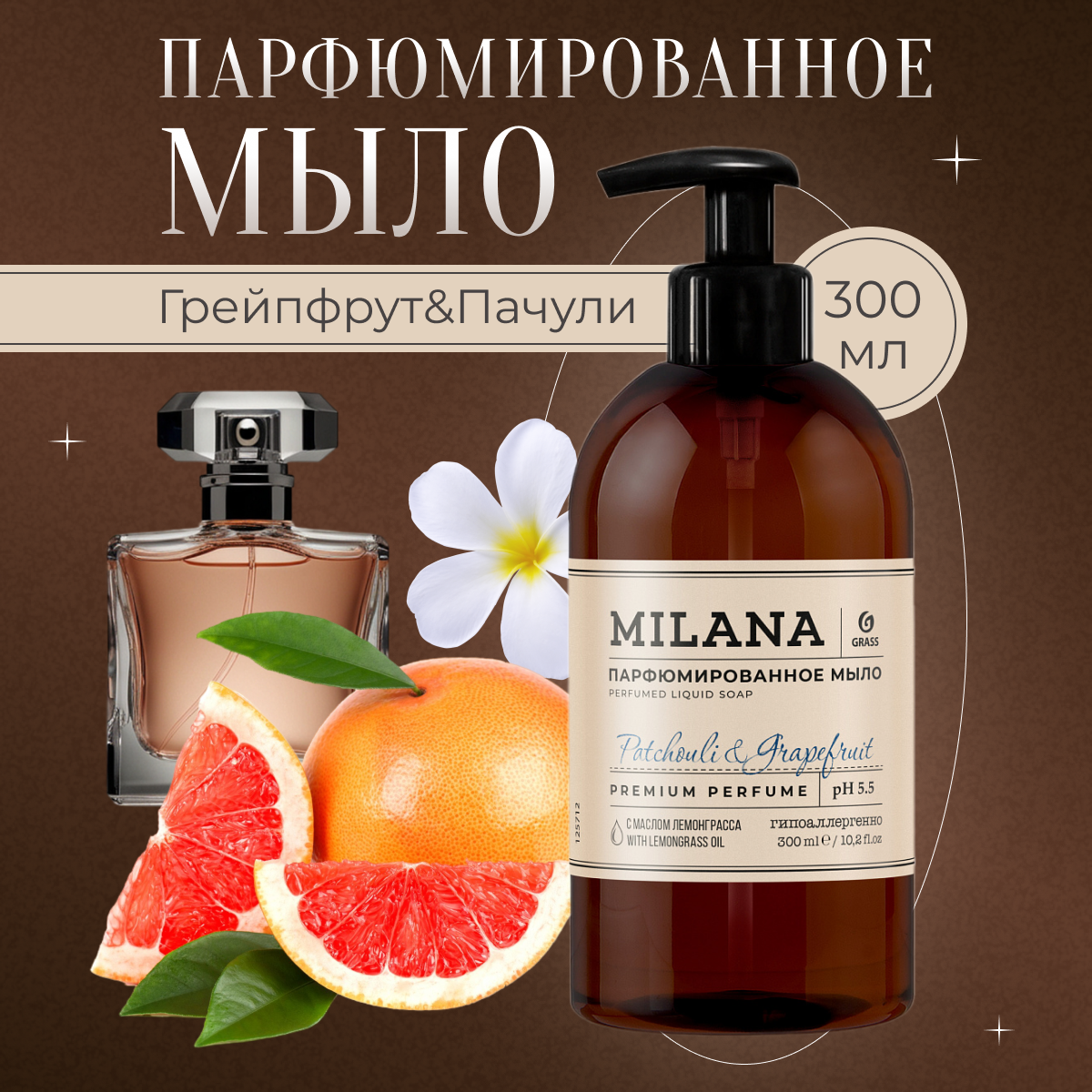 Мыло жидкое GRASS парфюмированное для рук Patchouli&Grapefruit 300 мл интересное:
