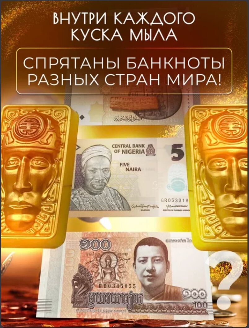 Мыло ручной работы с деньгами разных стран, деньги внутри, 70 гр интересное:
