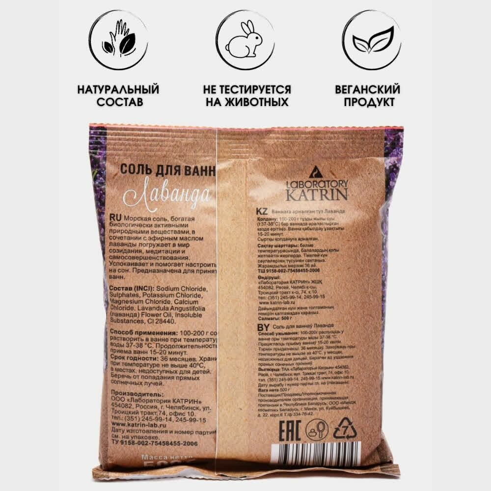 Купить Соль для ванн Laboratory Katrin "Лаванда", в пакете, 500 г