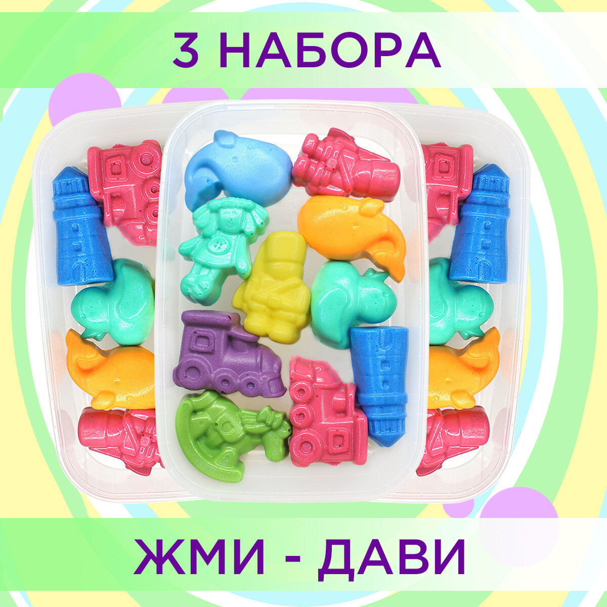 Пена для ванны и игрушка сквиши от Bubble squish / 3 набора / 39 шт / мялка Бабл сквиш
