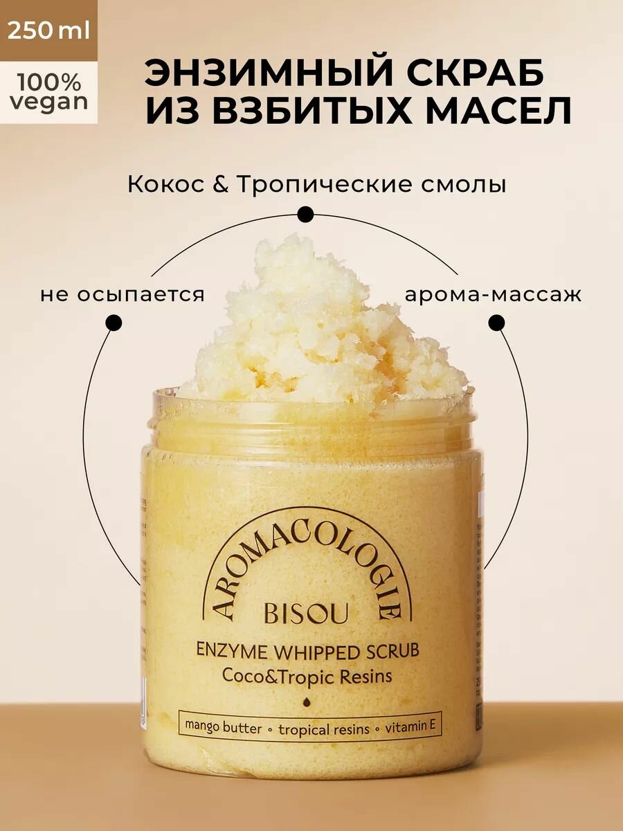 Скраб для тела BISOU "Aromacologie", Взбитый энзим, Кокос, Тропические смолы, 250 мл
