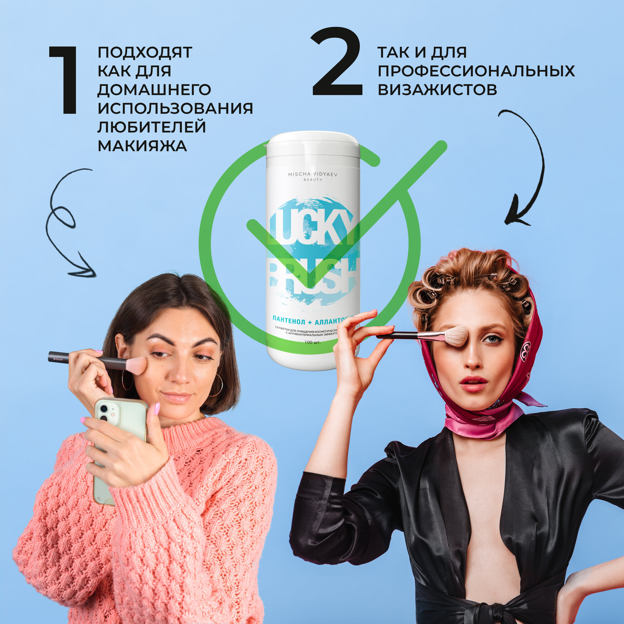 Салфетки для очищения кистей для макияжа, спиртовые, 100 шт, Mischa Vidyaev интересное: