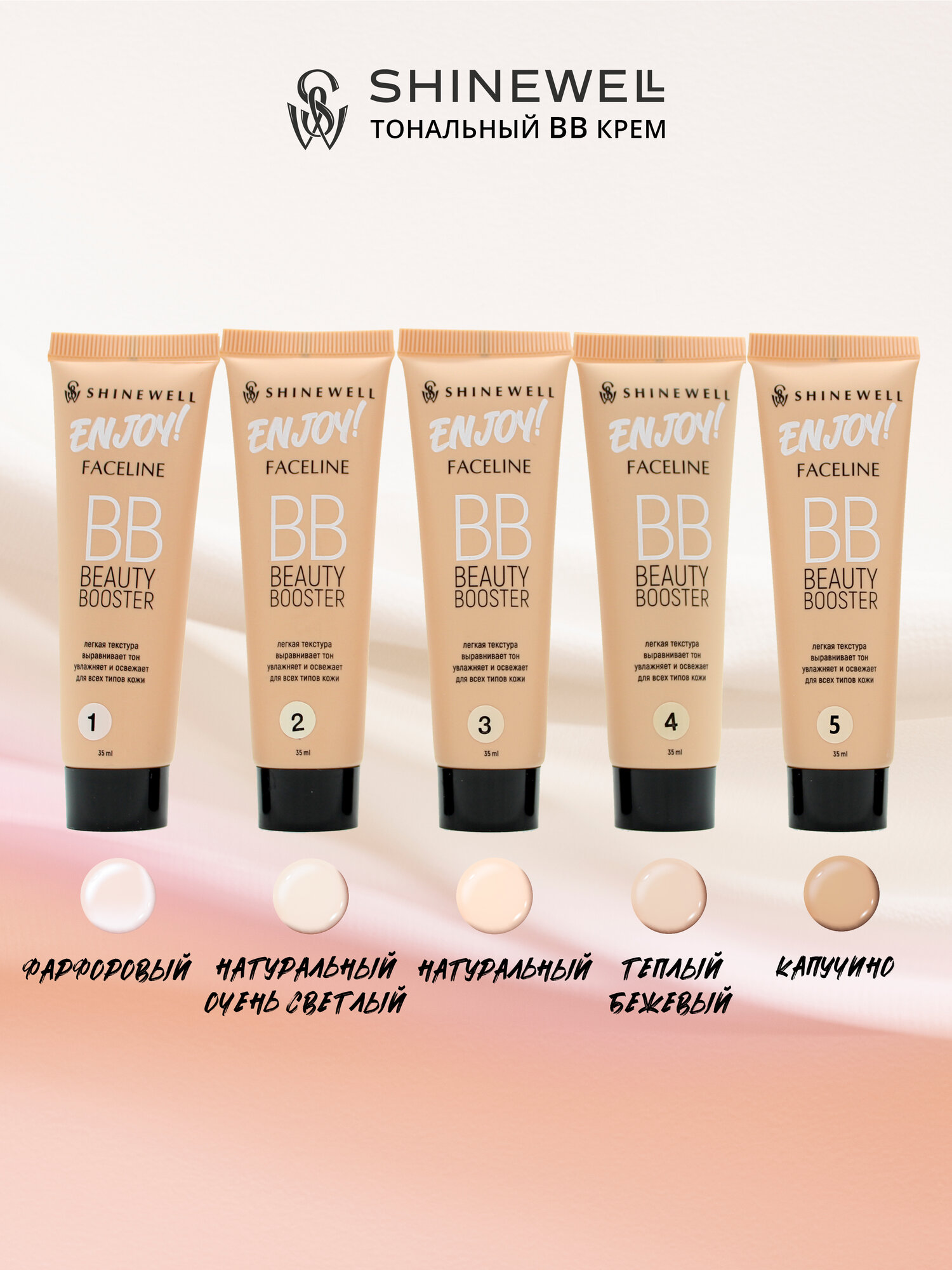 SHINEWELL Enjoy BB Beauty Booster Тональный крем для лица увлажняющий, тон 01 Фарфоровый