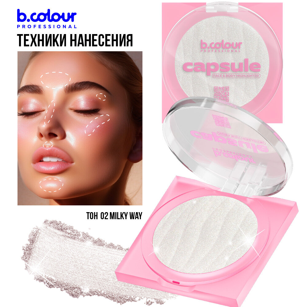 Купить B.COLOUR PROFESSIONAL Хайлайтер для лица, хайлайтер для тела сияющий, сухой, с легкой муссовой текстурой, CAPSULE 02 MILKY WAY