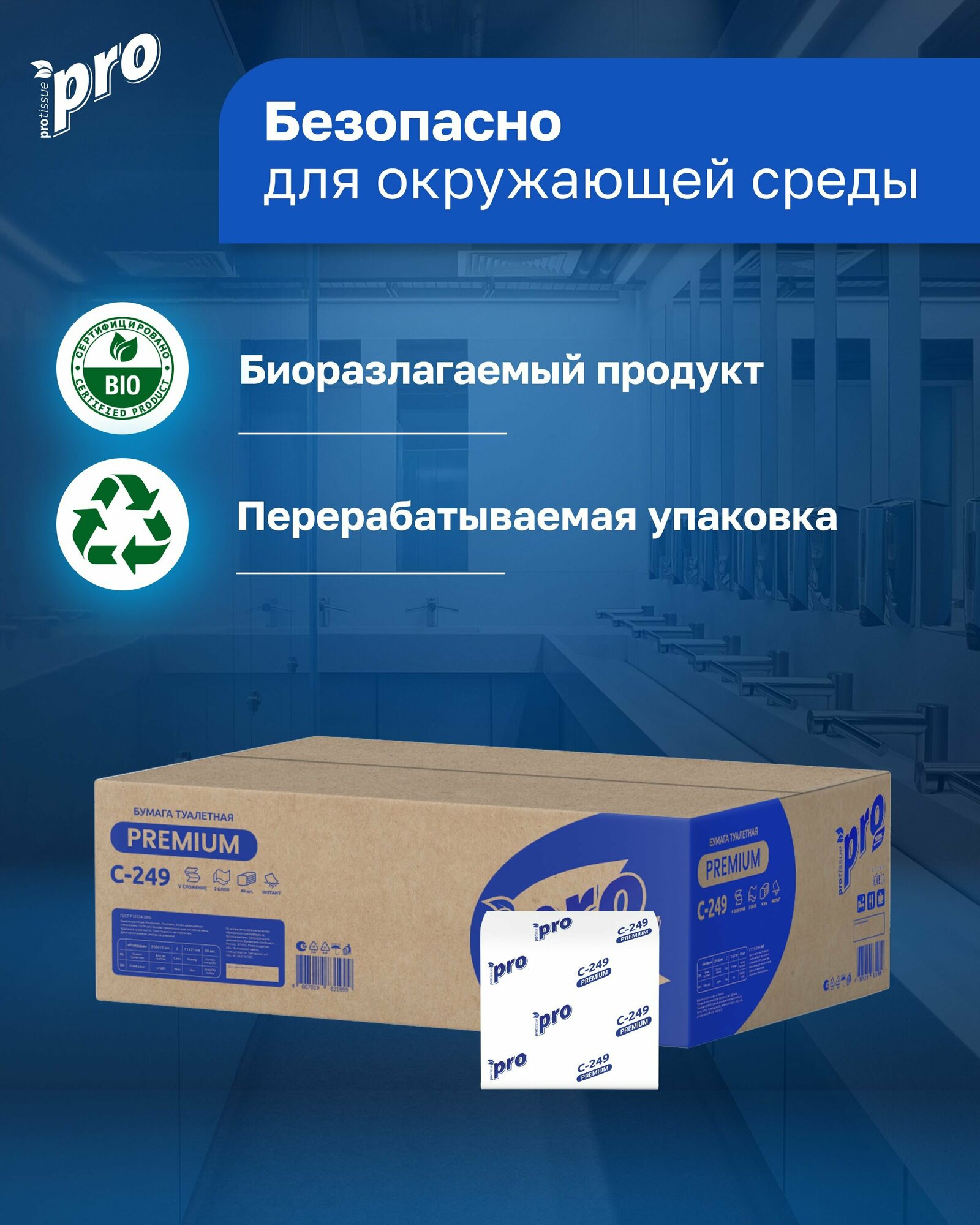 Туалетная бумага листовая Protissue Premium С-249, 2-слойная, система T3
