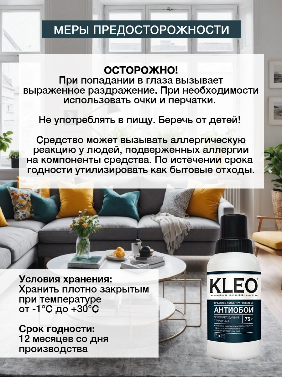 Средство для удаления старых обоев антиобои KLEO DELETE 250мл, 75 кв. м интересное: