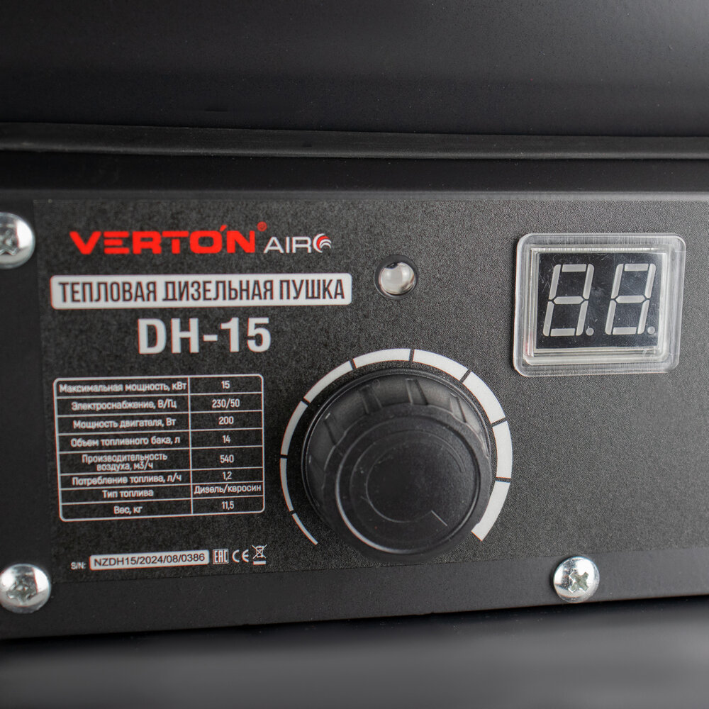 Купить Дизельная тепловая пушка Verton Air DH-15 NEW (15кВт,540м3/ч,1,1л/ч, прям. нагрев, дисплей, манометр, дизель/керосин)