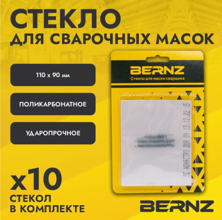 Стекло защитное прозрачное к маске сварщика 110х90 мм, уп. 10 шт, BERNZ интересное: