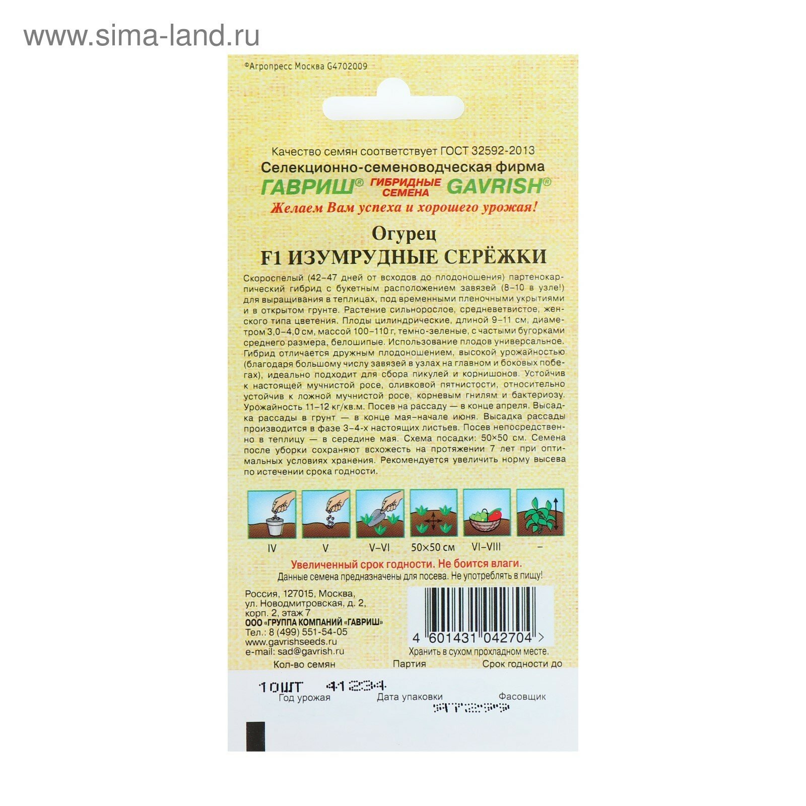 Семена гавриш Огурец Изумрудные сережки F1