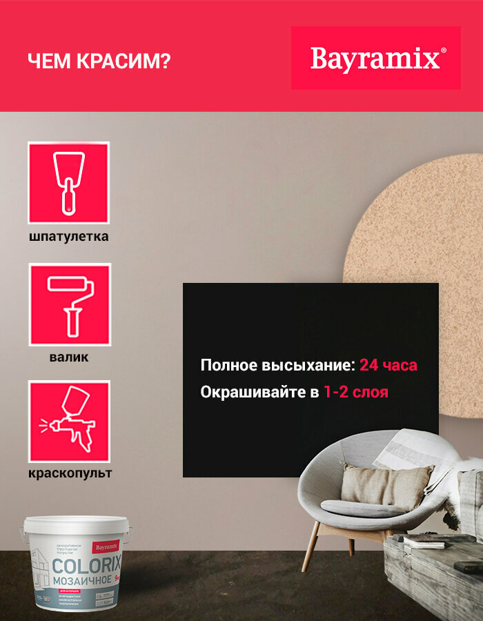 СохранитьДекоративная штукатурка на акриловой основе Bayramix Colorix Cl 15-1, 4,5 кг интересное: