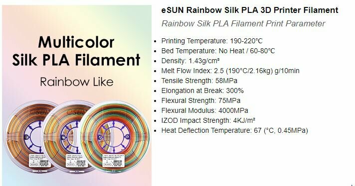 СохранитьФиламент eSilk-PLA eSUN для 3D принтера 1.75мм, радужный 1 кг. интересное: