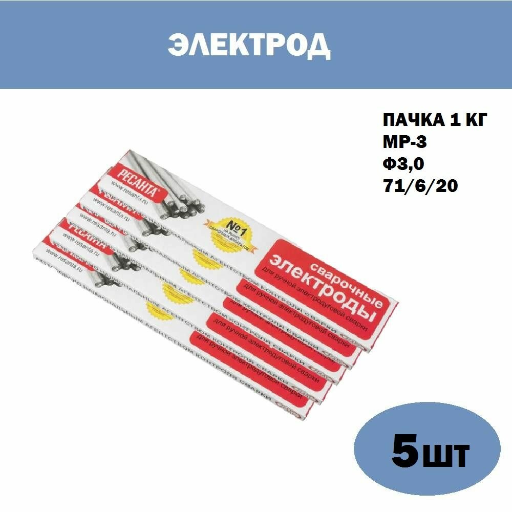 Купить Комплект 5 шт, Ресанта МР-3 Ф3,0 электрод пачка 1 кг, 71/6/20