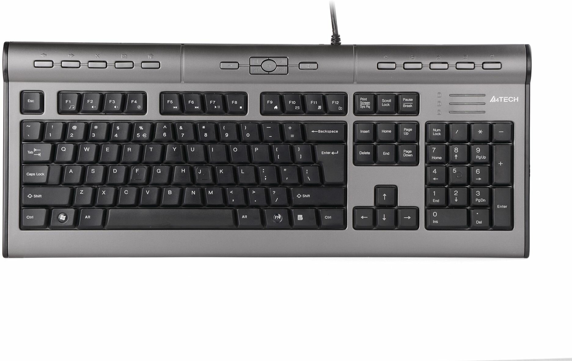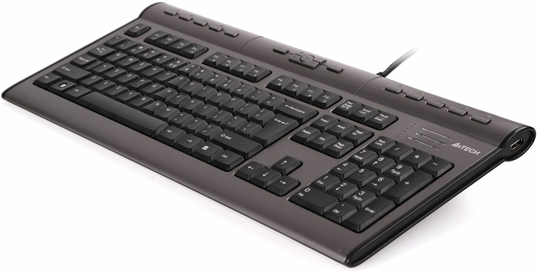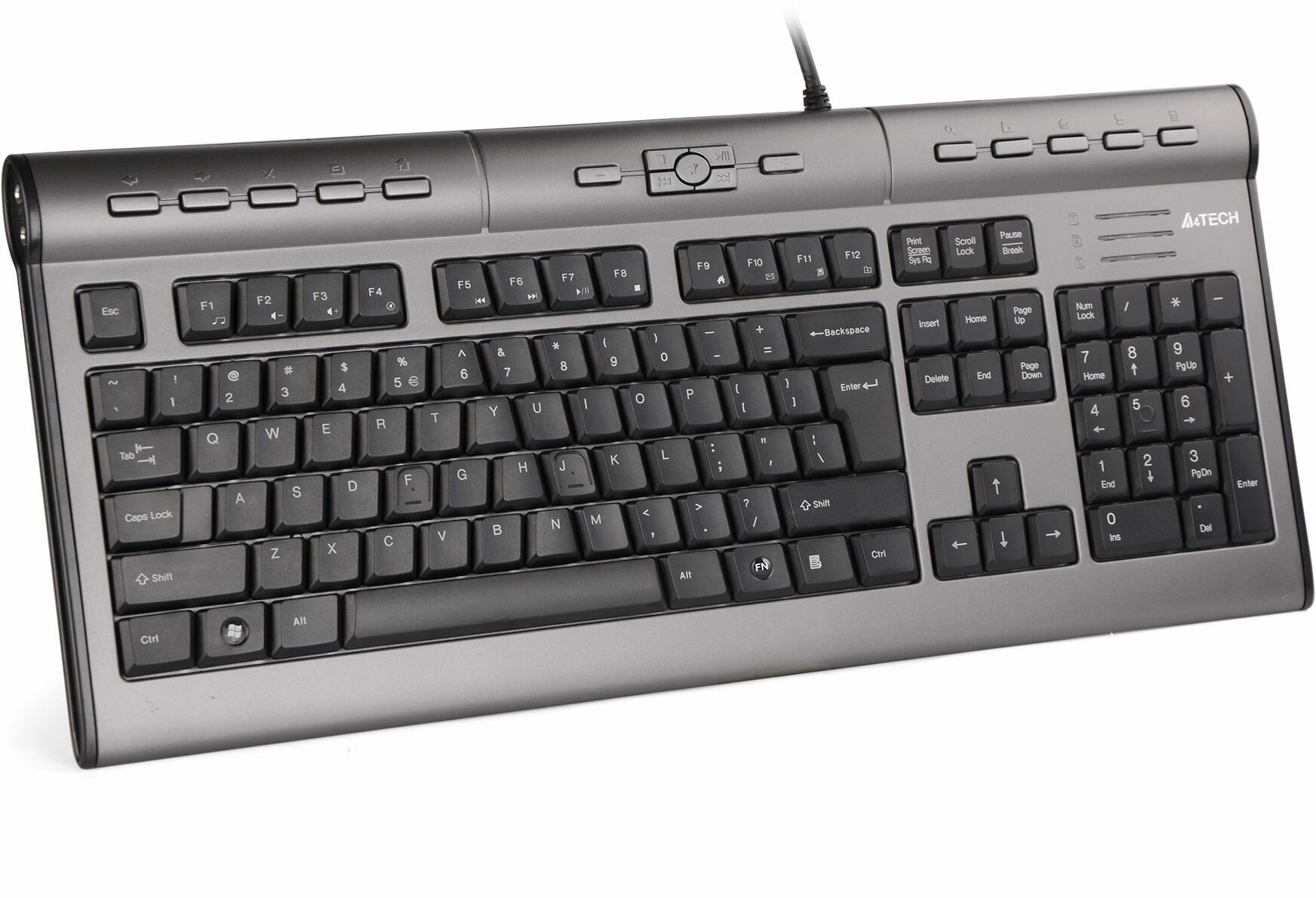 Клавиатура A4Tech kls-7muu,серебр/черн, USB,a-shape,слим, 17 доп.клавиш, порт USB2.0, аудио разъемы