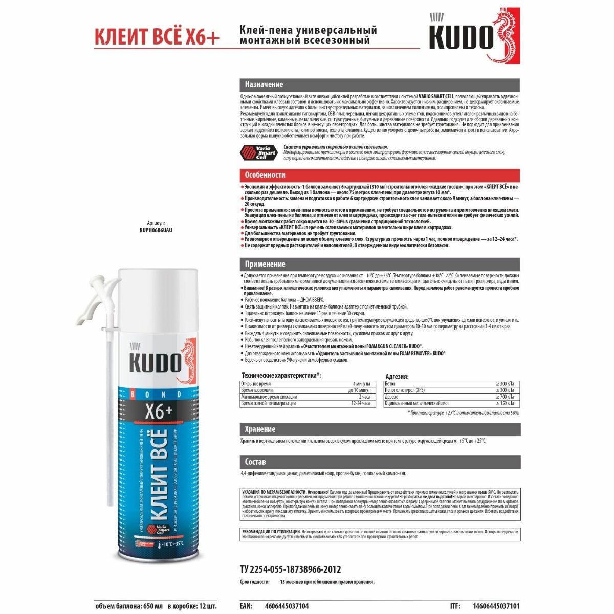 Клей-пена профессиональная универсальная Kudo Proff Superblitz HT, 650 мл