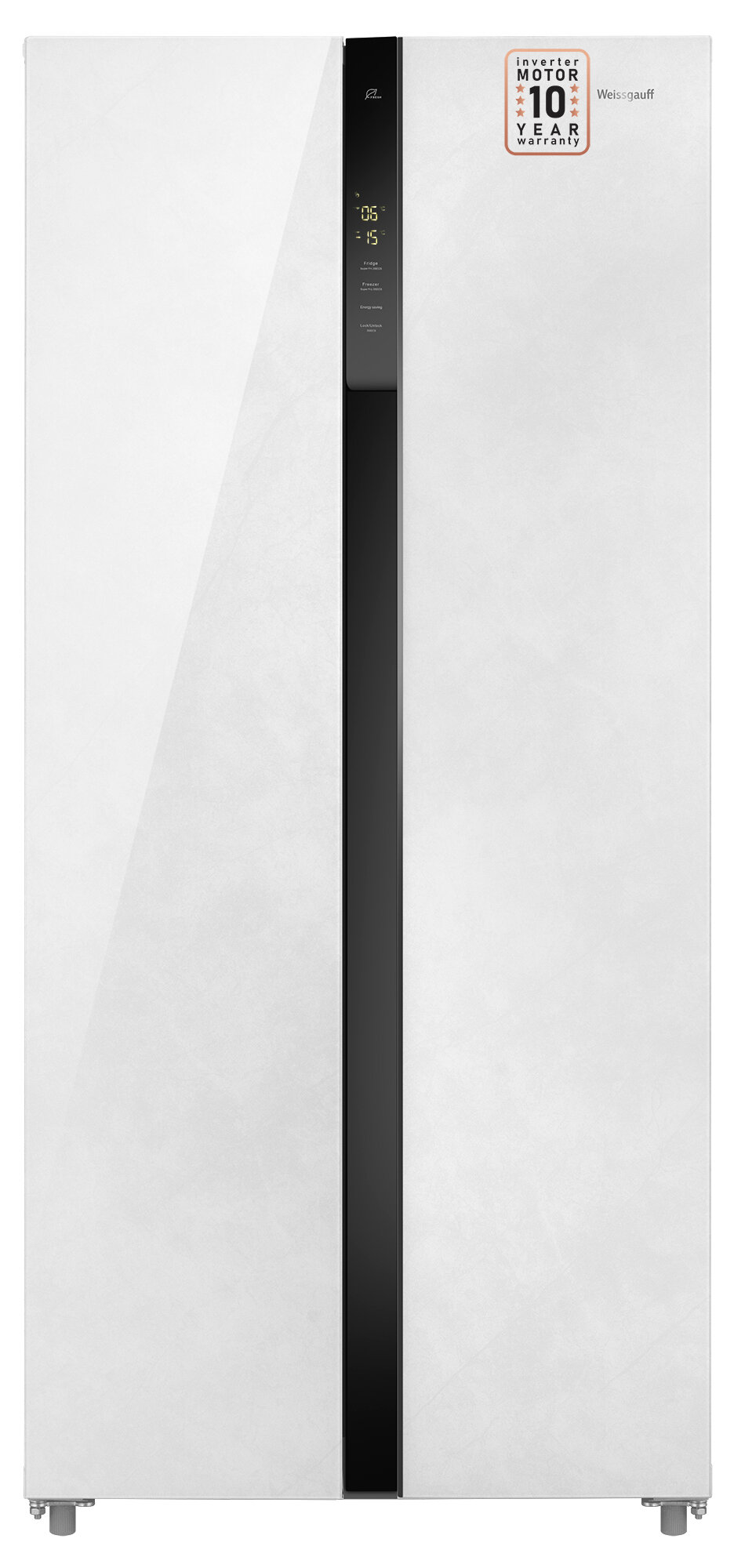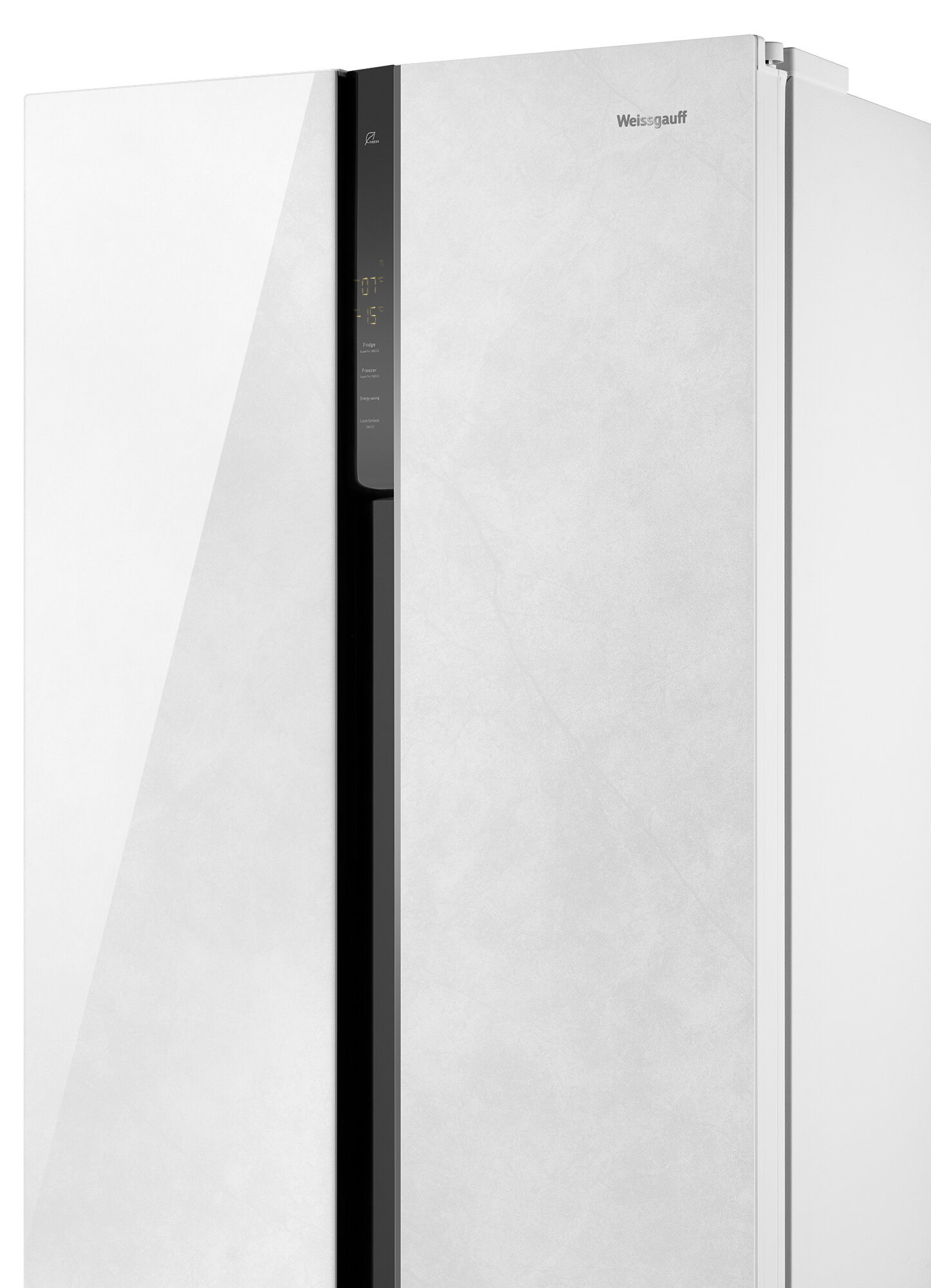 Отдельностоящий холодильник с инвертором Weissgauff WSBS 500 Inverter NoFrost White Glass Side by Side двухдверный, 3 года гарантии, Мощность замораживания 12 кг сутки, Сенсорное управление, Цифровой дисплей, Большой общий объём 500 л, Тихий режим работы