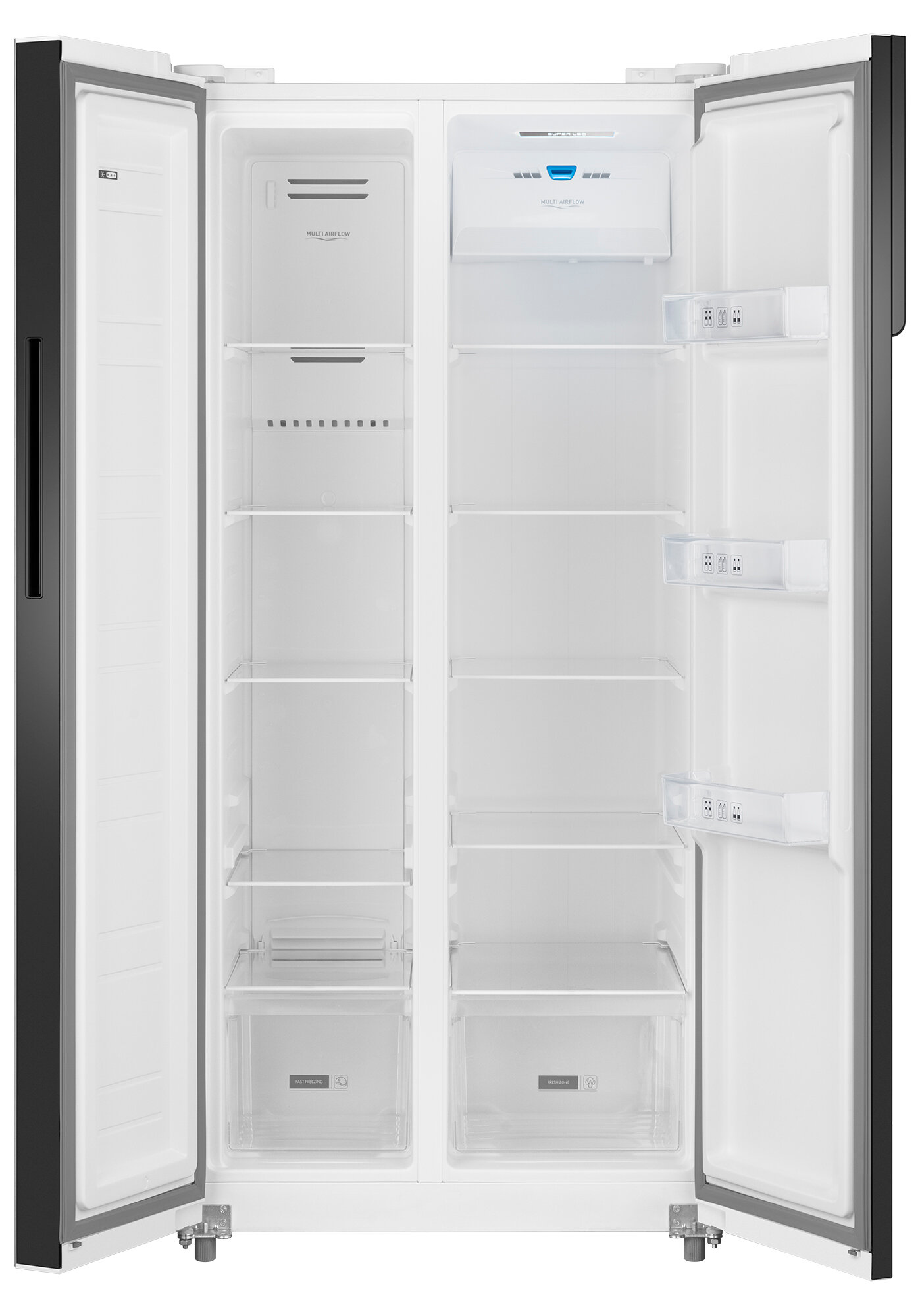 Отдельностоящий холодильник Side by Side двухдверный WSBS 500 Inverter NoFrost Black Glass, 3 года гарантии, Полный No Frost, инвертор, Сенсорное управление, Цифровой дисплей, LED освещение, Большой общий объём 500 л, Тихий режим работы, A+