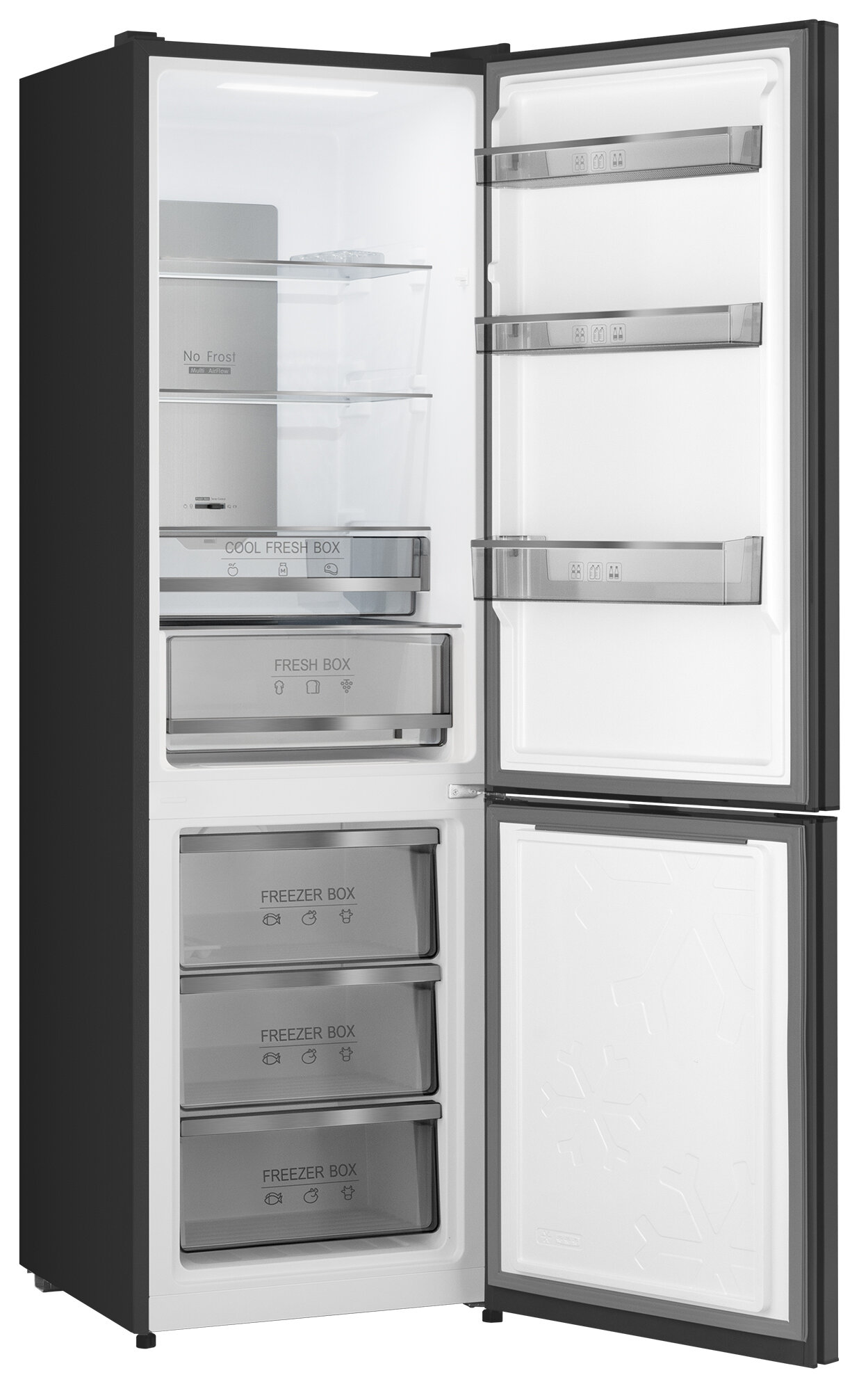 Отдельностоящий холодильник Weissgauff WRK 195 D Full NoFrost Dark Grey Glass двухкамерный ширина 60 см, 3 года гарантии, Стеклянный фасад, Тихий режим, Большой объём, Сенсорное управление, Дисплей, Супер заморозка, Супер охлаждение, LED освещение