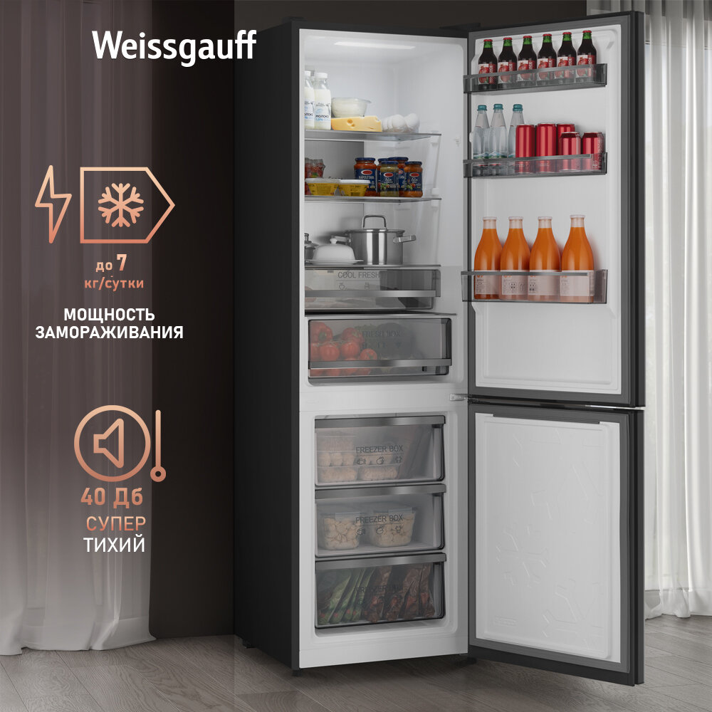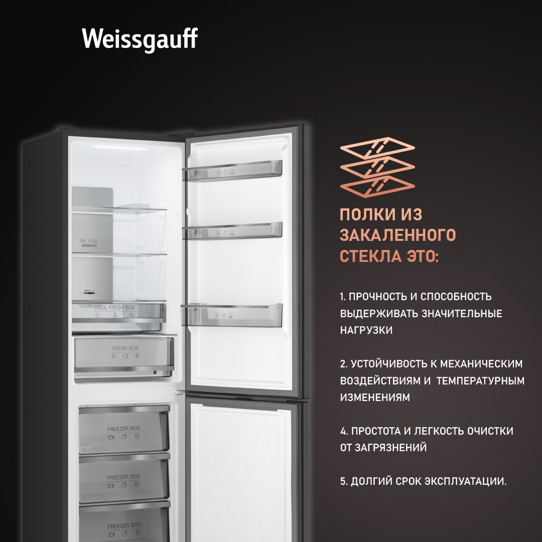 СохранитьХолодильник Weissgauff WRK 195 D Full NoFrost Rock Glass двухкамерный ширина 60 см, LED освещение интересное: