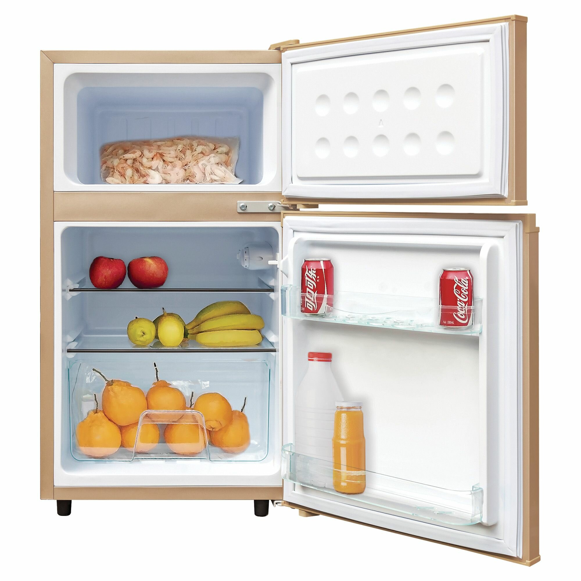 Холодильник двухкамерный BBK RF-099 бежевый, общий объем 98 л