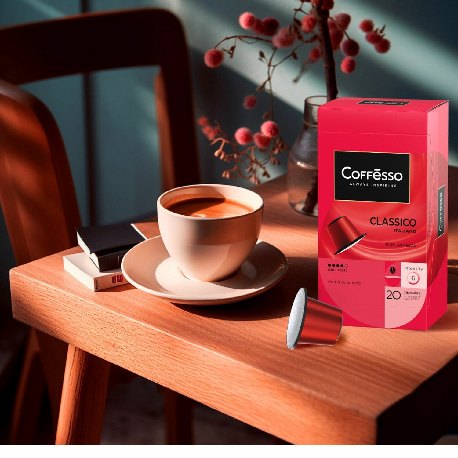 Кофе в капсулах Coffesso подарочный "Classico Italianо", арабика 100%, тёмная обжарка, интенсивность 6, с легкими карамельными нотами, для кофемашины Nespresso- 40 капсул по 5 г.